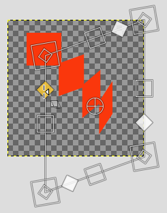 y fuera del marco, el puntero del ratón viene con un ícono de rotación: pulse y arrastre para girar alrededor del pivote . Este pivote está, de forma predeterminada, en el centro de la imagen: pulse y arrastre para moverlo.