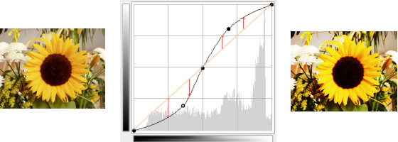 If you click the curve, a new point is created. When the mouse pointer goes over a point, it takes the form of a small hand. You can click-and-drag the point to bend the curve.