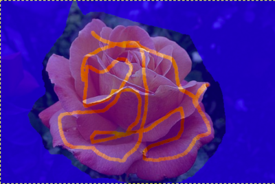 The mouse pointer now changes into a Paintbrush icon with a circle. The dark blue area (this color can be changed) shows the background. The lighter area covers the zone you have selected as foreground and a small part of background. Outside the selected area, the dark blue area is called the Unknown pixels area.