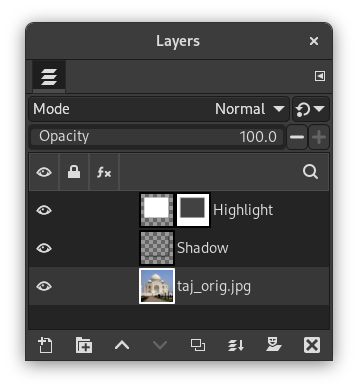 The selection will be covered by a partially transparent area filled with the highlight color. This option lets you set the level of transparency. Since a layer mask will be used, the value ranges from 0 (full transparency) to 255 (full opacity).