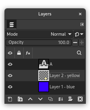 We clicked left from and above the red layer, and dragged out a region covering the red and the yellow layer by moving the pointer towards the bottom right corner.